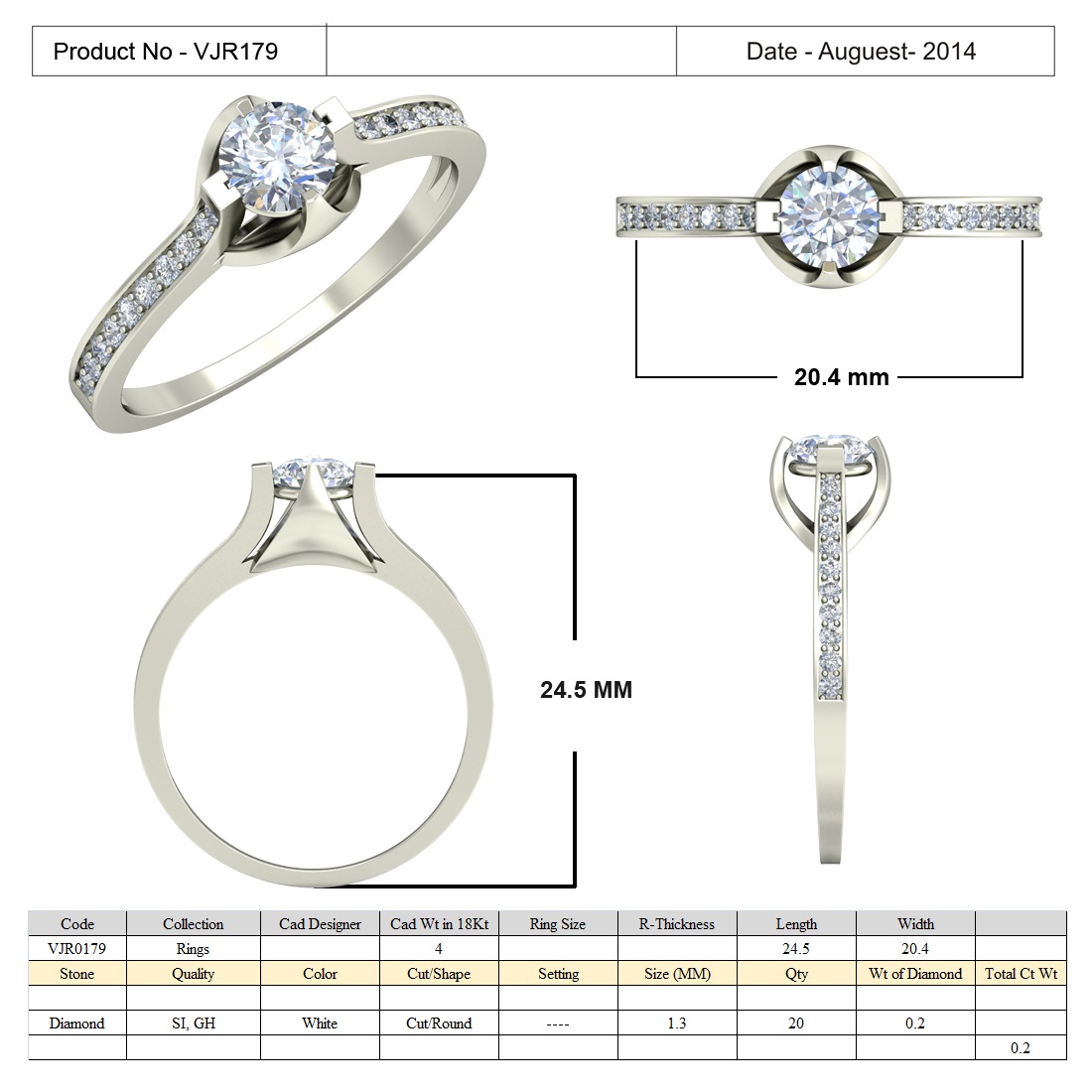 Total Carat Weight: Approx. 0.20 ct