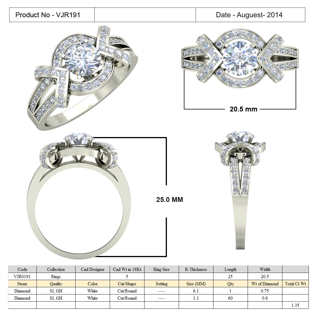 Total Carat Weight: Approx. 1.35 ct