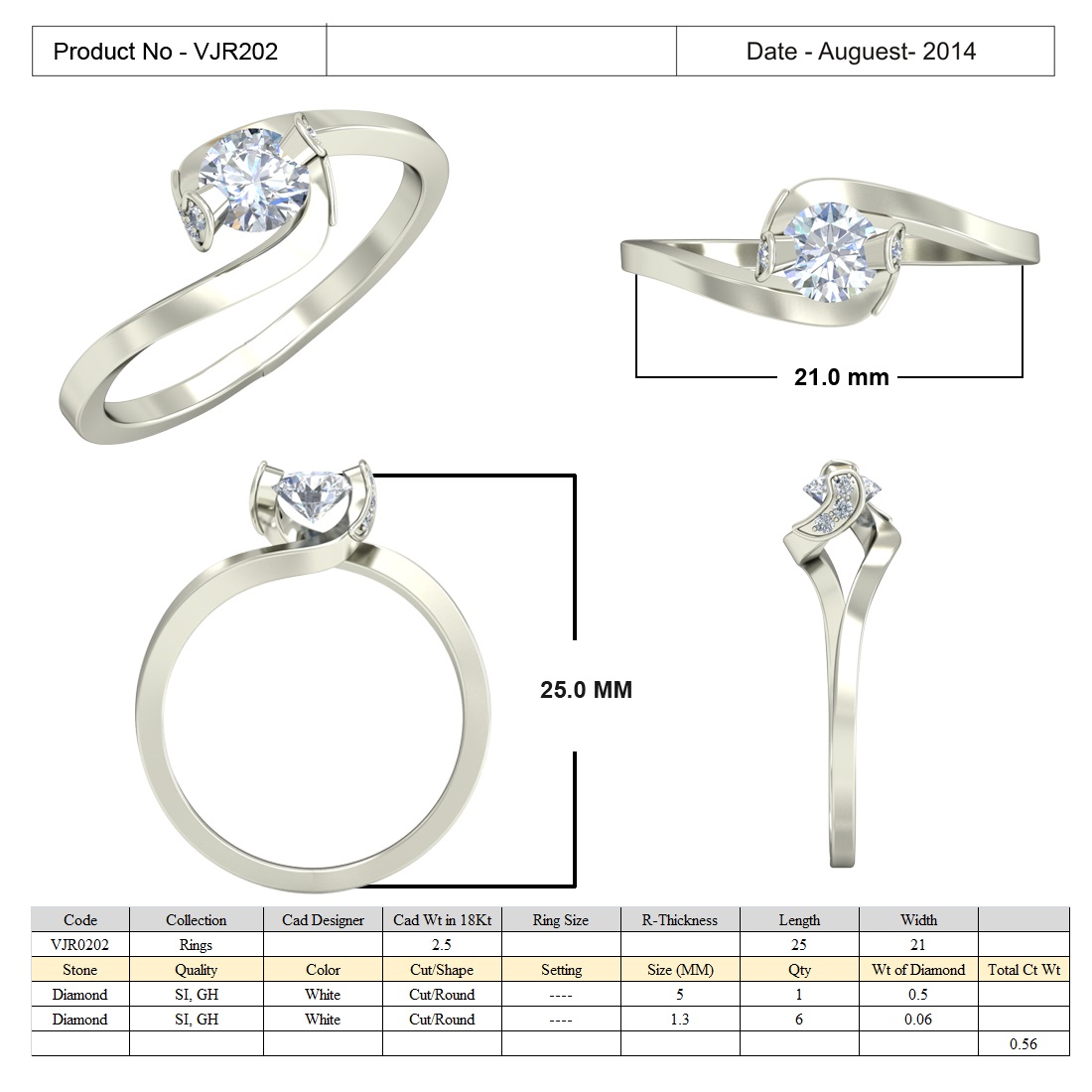 - Stone Sizes: 5 mm (center) and 1.3 mm accent stones