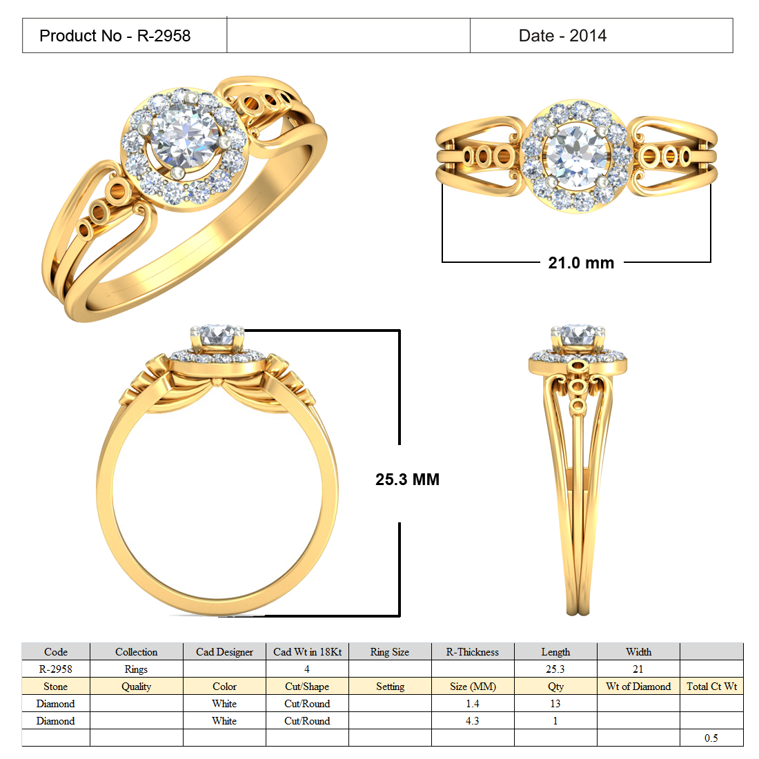 - 💎 Center Stone: Round Cut Diamond (4.3 mm)