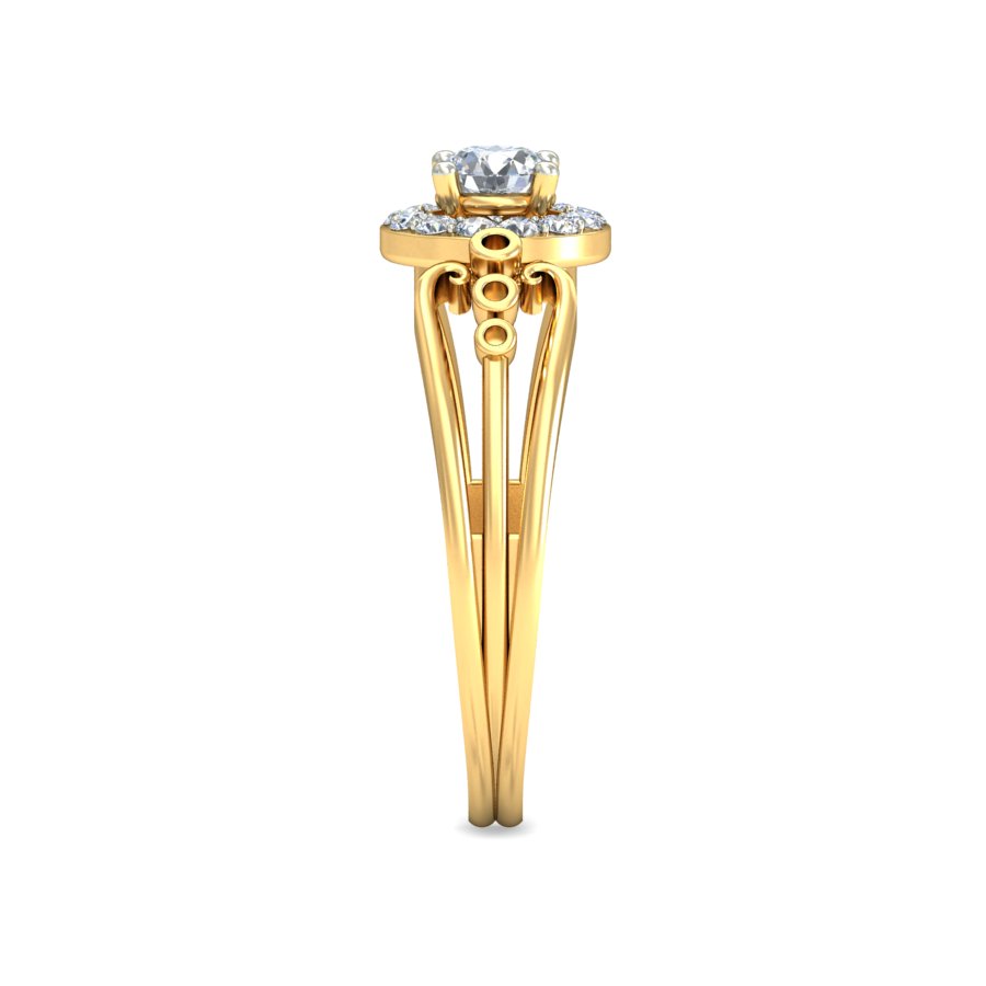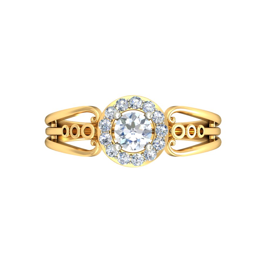 Step into timeless elegance with our Vintage Halo Diamond Ring with Designer Split Band, a masterpiece that blends classic brilliance with intricate detailing. At its center lies a round-cut solitaire diamond, encircled by a radiant halo of smaller diamonds that enhance its sparkle and presence.